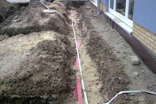 • praktikable Verlegung abgehend von Gebäudekanten oder unter Benutzung von vorhandenen Gräben oder Schachtungen