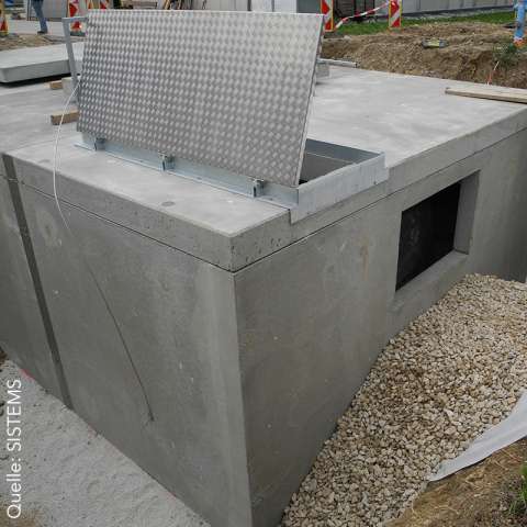 Vorgefertigte Heizzentrale und Hausanschlussraum – das ist der GROUND CUBE. Im unterirdisch verbauten Betonkubus findet die gesamte Haustechnik Platz. Beim Schutz der sensiblen Geräte setzt SISTEMS auf Überspannungsschutz von DEHN.