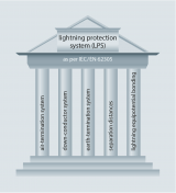 The function of a lightning protection system is to protect structures from fire or mechanical destruction and to prevent that persons in buildings are injured or even killed. An overall lightning protection system consists of external lightning protection (lightning protection/earthing) and internal lightning protection (surge protection).