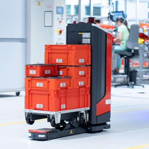 - 20 automated guided vehicles (AGVs) supply the workstations with materials